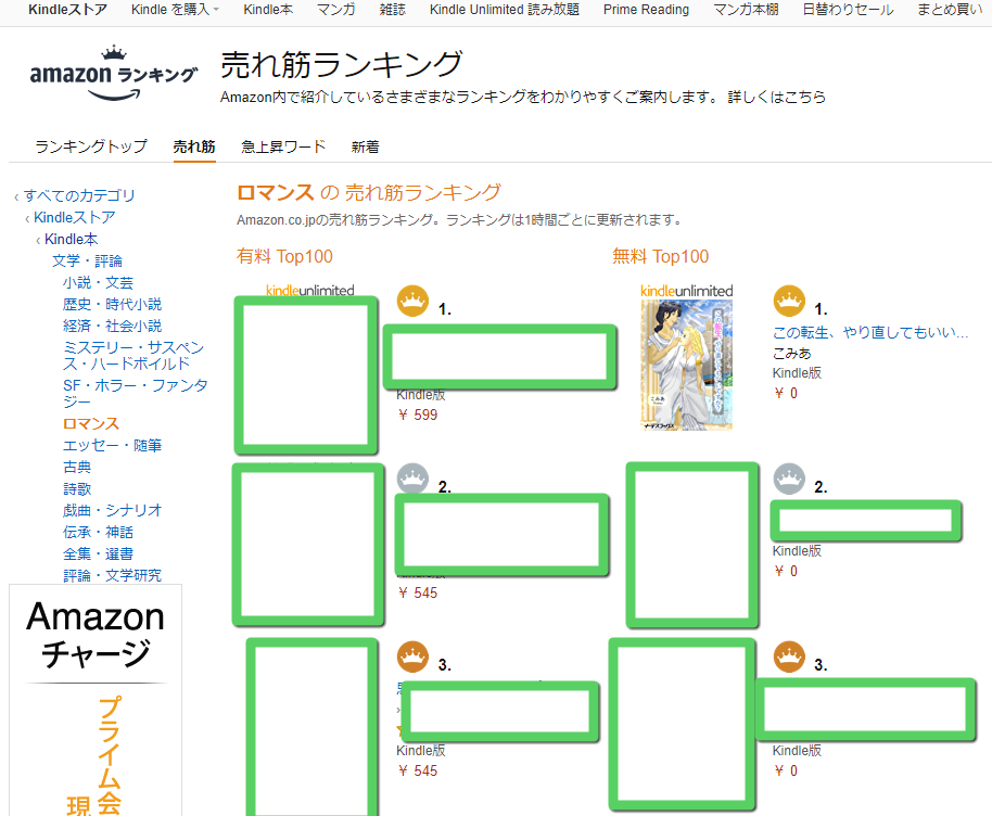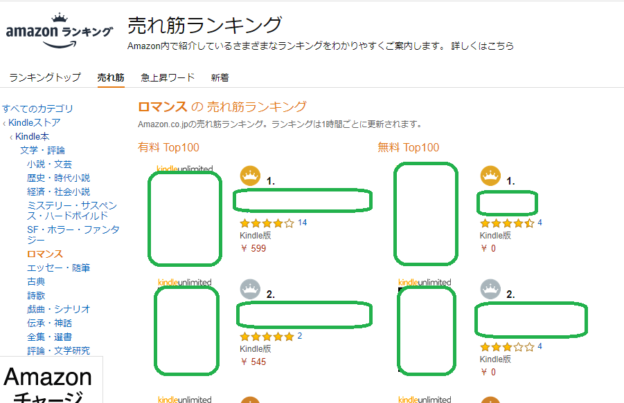 現在、Kindleのホームページには有料と無料、二本立てのランキングが表示されています。