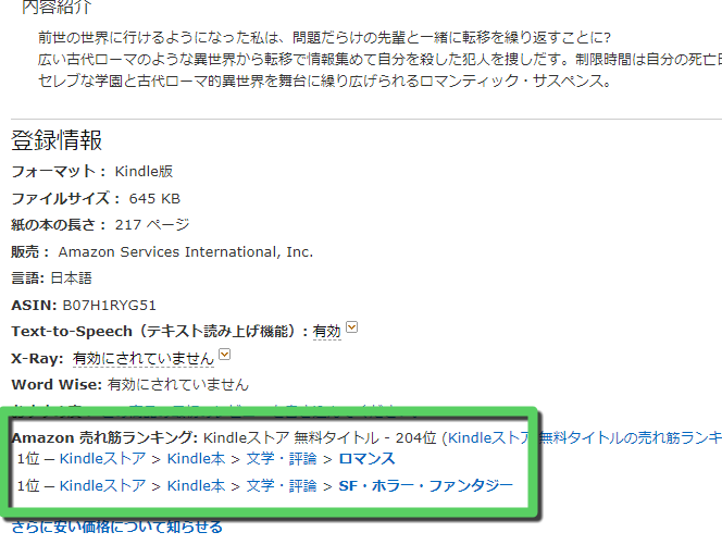 拙作も『ロマンス』と『SF・ホラー・ファンタジー』の2カテゴリーで一時無料タイトル1位を頂きました。